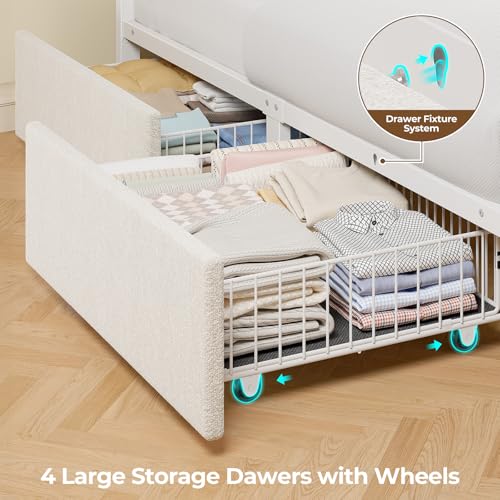 Four Easy-Slide Storage Drawers: Keep your room neat with four drawers that pull out smoothly. They add extra space for clothes, blankets or daily items, so you stay organized without taking up more room. Plus, each drawer has built-in anti-slip clips to keep it from sliding out accidentally