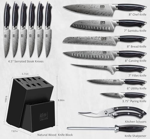 Specification: SHAN ZU 16 Pieces Knife Set, Knife Block Set in Powder Steel, Ultra Sharp Kitchen Knives Set, High Hardness Japanese Knife Set with Ergonomic Pakkawood Handle, Chef Knives Set for Kitchen Cooking