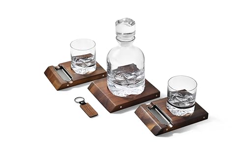 Magnetic Acacia Coasters: Includes sustainable hardwood coasters with hidden magnets that keep glasses in place, combining practicality with rustic beauty.