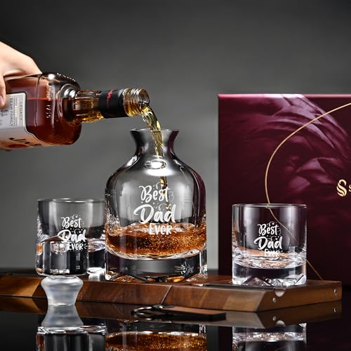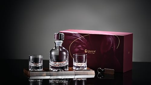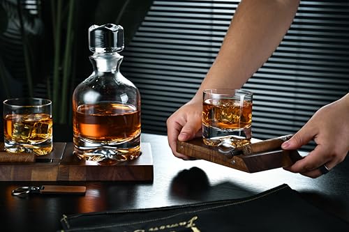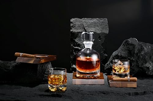 Specification: Shanik 750ml Whiskey Decanter Set with Magnetic Acacia Coasters – Lead-Free Crystal Glasses & Cigar Holders – Luxury Gift for Bar, Birthday, Anniversary