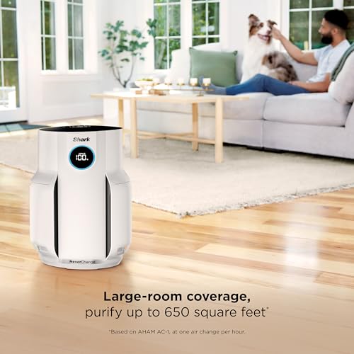 Shark Air Purifier for Home, NeverChange, for Large Room, Bedroom, Home Office, HEPA-Exceeding Filter, Captures Pollutants, Pet Dander, Dust, Odor, Smoke, and More, HP153, White