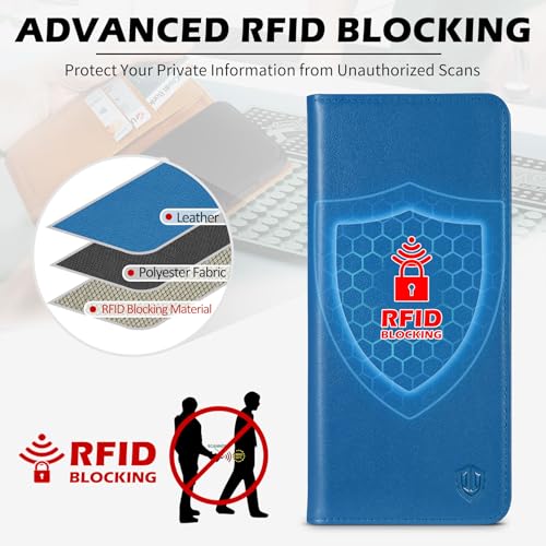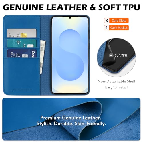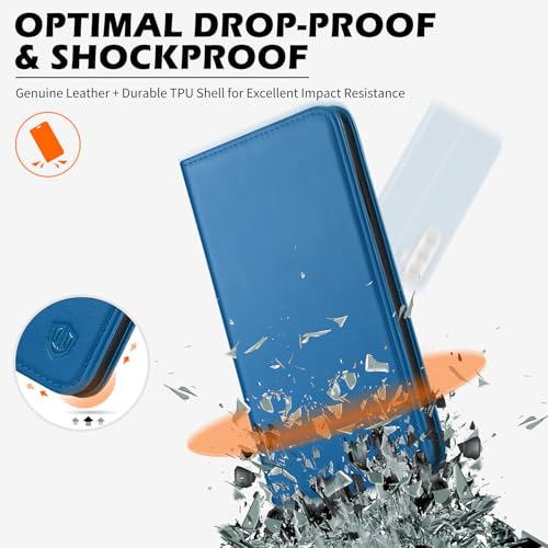 SHIELDON Case for Galaxy S25 6.2″, Genuine Leather Wallet RFID Blocking Credit Card Holder Kickstand Magnetic Shock Absorbing Protective Case Compatible with Galaxy S25 2025 – Sapphire Blue