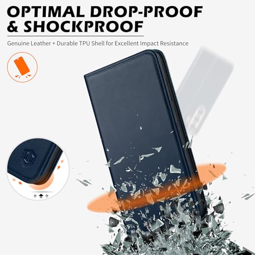 SHIELDON Case for Galaxy S25 FE 6.7″ 5G, Genuine Leather Folio Wallet Case Magnetic Kickstand RFID Blocking Card Slots Shockproof Protective Cover Compatible with Galaxy S25 FE 2025 – Navy Blue