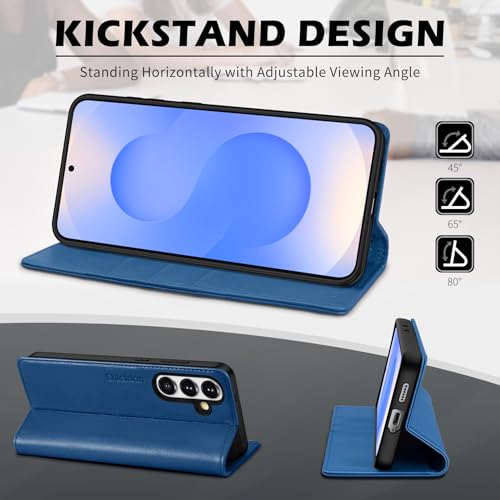Specification: SHIELDON Case for Galaxy S25 FE 6.7″, Genuine Leather Wallet Magnetic Case with RFID Blocking Card Holder Kickstand Shock Absorbing Cover Compatible with Galaxy S25 FE 5G 2025 – Royal Blue