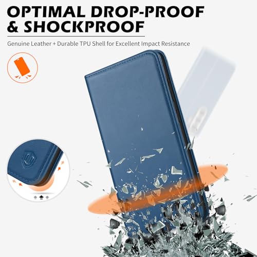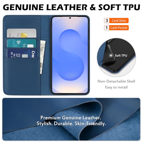 SHIELDON Case for Galaxy S25 FE 6.7″, Genuine Leather Wallet Magnetic Case with RFID Blocking Card Holder Kickstand Shock Absorbing Cover Compatible with Galaxy S25 FE 5G 2025 – Royal Blue