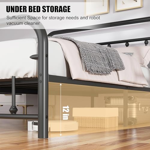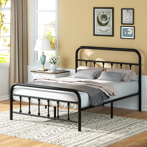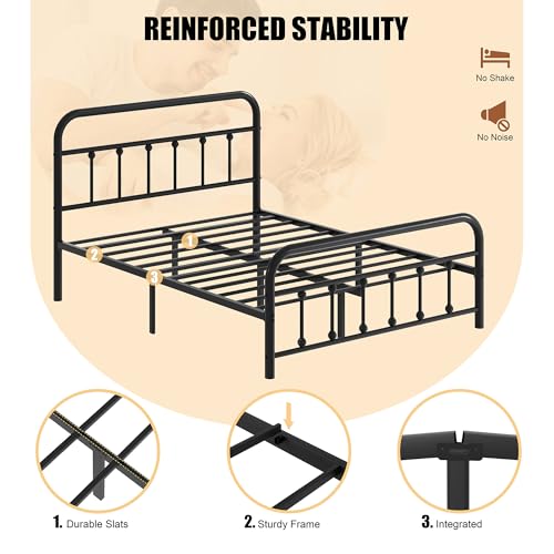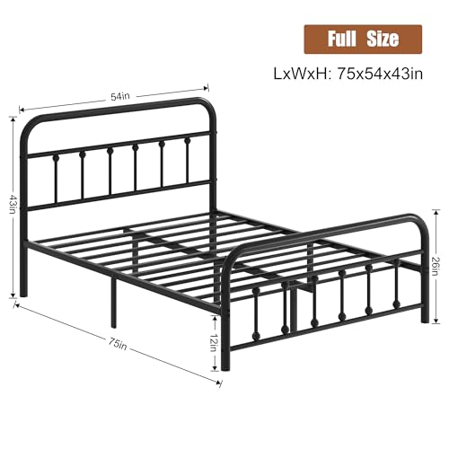 Specification: Shintenchi Full Size Metal Platform Bed Frame with Headboard & Footboard, Steel Slat Mattress Foundation, Under Bed Storage, Noise-Free, No Box Spring Needed, Black