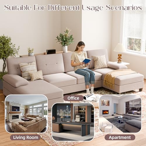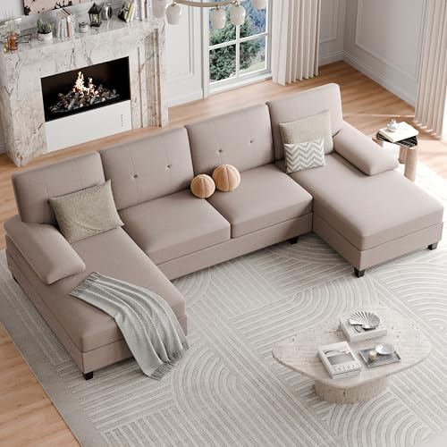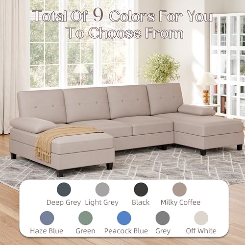 Specification: Shintenchi U Shaped Sectional Couches for Living Room, 4 Seat Modern Sectional Sofa with Removable Armrest & Soft Backrest for Apartment and Small Space, Milky Coffee