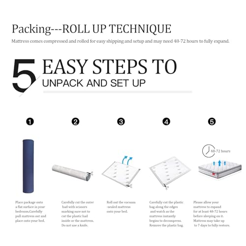 The Mattress Is Shipped Compressed, Rolled And Sealed In Oxford Cloth To Arrive At Your Door Step.The Box Spring Is Not Included. Please Allow Up To 48-72 Hours For The Mattress To Fully Expand And For Any Potential Odor To Dissipate. Some Other Factors, Such As Cold Weather, Will Affect The Decompression Time. It May Take Up To A Week To Expand Under These Circumstances.Please Pull The Ends Of The Mattress And Clap It To Let The Air Easily Get In.