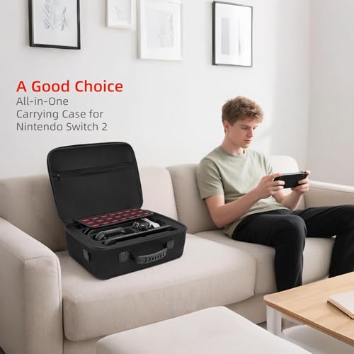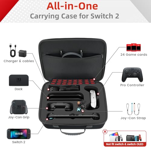 Specification: SIBONIC Hard Carrying Case Compatible with Nintendo Switch 2 (2025), All in One Storage Organizer for Switch 2 Console, Dock, Pro Controllers, Joy-Con Grip, Power Adapter, with 24 Game Card Slots.