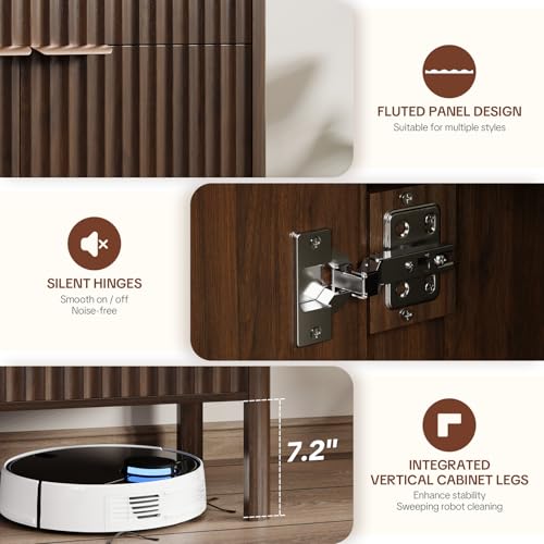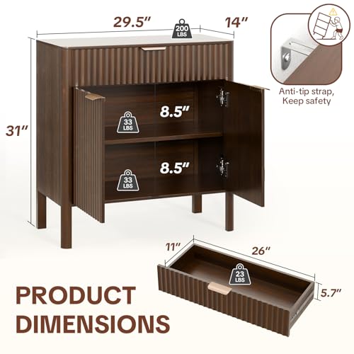 Specification: Sideboard Buffet Cabinet with Storage – Modern Fluted Credenza with Doors & Drawer, Accent Cabinet Coffee Table Bar Counter Bookcase for Living Room Kitchen Dining Room Entryway 31″ H Walnut