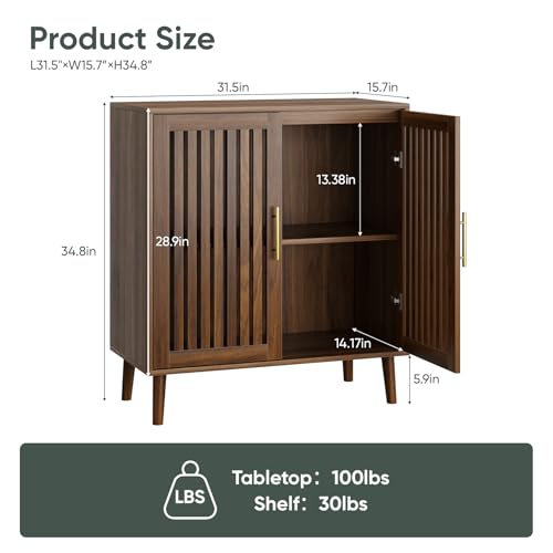 Specification: Sideboard Cabinet, 31.5″ W Farmhouse Buffet Cabinet with Slatted Doors & Adjustable Shelf, Wood Coffee Bar Storage Station for Kitchen, Dining Room, Living Room, Entryway, Walnut Color