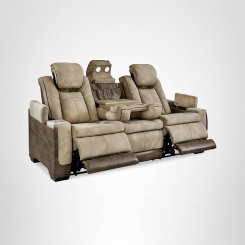 Specification: Signature Design by Ashley Next-Gen DuraPella Power Reclining Sofa – Wireless & USB Charging, Zero-Gravity, Adjustable Headrest, Water-Repellent Faux Leather, Drop-Down Table, Beige/Brown, 86”
