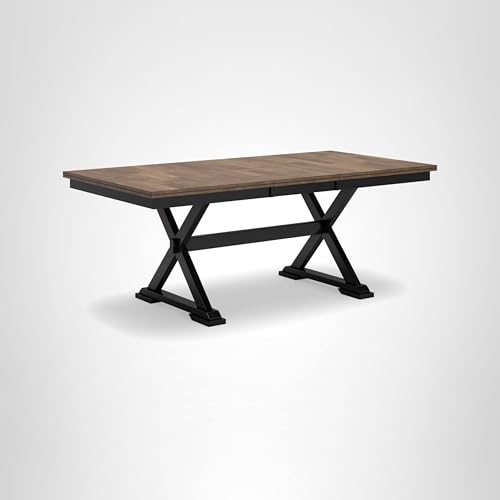 Specification: Signature Design by Ashley Wildenauer Dining Extension Table, Self-Storing Butterfly Leaf, Seats 8, Hardwood Solids, 40″ W x 78″ D x 30.13″ H, Black & Dark Brown