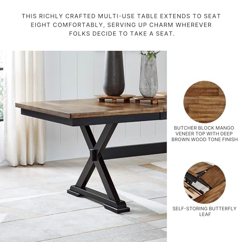 Signature Design by Ashley Wildenauer Dining Extension Table, Self-Storing Butterfly Leaf, Seats 8, Hardwood Solids, 40″ W x 78″ D x 30.13″ H, Black & Dark Brown