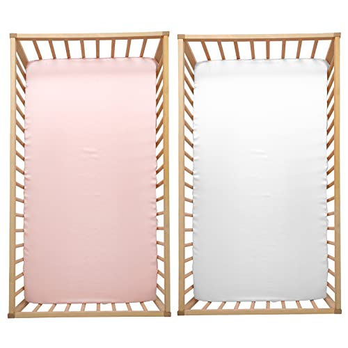 Specification: SiinvdaBZX 2 Pcs Satin Crib Sheets for Girls, Silky Soft Crib Fitted Sheets for Standard Crib and Toddler Mattress (Pink & White, 52 x 28 x 8In)