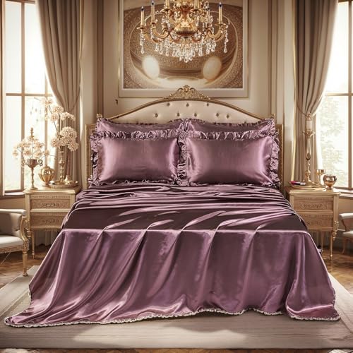 LUXURY SILK LIKE IMITATED FABRIC – European style satin comforter set with sheet Set. Artificial silk combine the advantages of silk and artificial materials, full of luxury texture. The appearance of the fabric is softer and elegant, like the luster of the pearl; Super smoothly, soft and comfortable, flexible. Texture is also relatively thin, feel crisp. Cool skin care in summer, color is extra bright and gorgeous, it’s best for you to decorate luxury and charming style bedroom in all season.