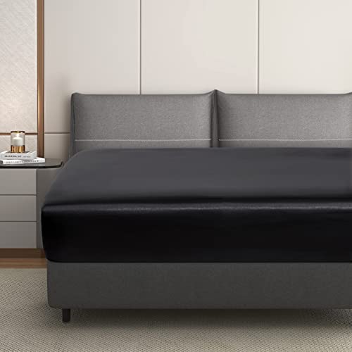 Specification: Silk Satin Black Twin Fitted Sheet, Deep Pocket Fitted Sheet Only, Breathable, Non- Fading, Fully Elasticized Bed Sheets Sold Separately