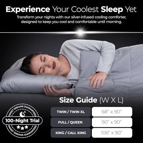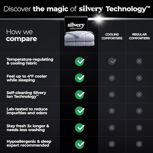 #1 SLEEP EXPERT-RECOMMENDED COMFORTER: Discover breakthrough comfort with the Silvery Cooling Comforter, featuring NASA-inspired silver-ion Silvery Technology. Perfect for hot sleepers, this comforter provides advanced temperature regulation and self-cleaning performance to keep you cool, fresh, and comfortable all night long.
