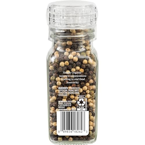 Specification: Simply Organic Whole Pepper Grinder, 3 Ounce Bottle, Blend of Black, White and Green Peppercorn for Complex Flavor