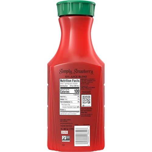 Treat yourself to the fresh taste of Simply Strawberry. Real, rich and ripe strawberries are carefully selected and turned into a deliciously simple all-natural juice drink with the sweet and tart flavor you love. The fresh taste of Simply Strawberry pairs well with breakfast, a hot summer day or as a leading ingredient in classic cocktails or mocktails like Strawberry daiquiris.​​Made with not from concentrate juices and purees, you’ll always have the Simply “Fresh Taste Guarantee” with this refreshing non-GMO mango juice drink. Made with real strawberry juice, Simply Strawberry has that naturally delicious, farm-fresh taste. Because with Simply, there’s nothing to hide.​Simply products start with great-tasting fruit and end with great-tasting fruit juices, fruit drinks and fruit smoothies.​That’s because we believe the best things in life are made simply.