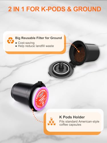 【Brew in 2 Ways】Karosie single serve coffee maker is compatible with both K pod and ground coffee, which satisfies the diverse taste needs of coffee lovers. With a brewing capacity of 6–12 oz, it features a one-button operation that fast brews a fresh cup of hot coffee. Great for chaotic mornings when you need caffeine ASAP