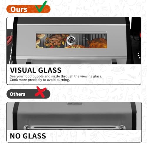 🍖【 Viewing Window and Temperature Gauge】: Get ready to elevate your grilling game with our innovative griddle lid featuring a stylish visual glass panel and an easy-to-read temperature gauge.With the visual glass, you can see your culinary creations bubble and sizzle without lifting a finger. Just peek through and marvel at the deliciousness happening inside!