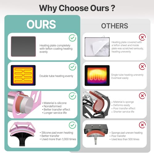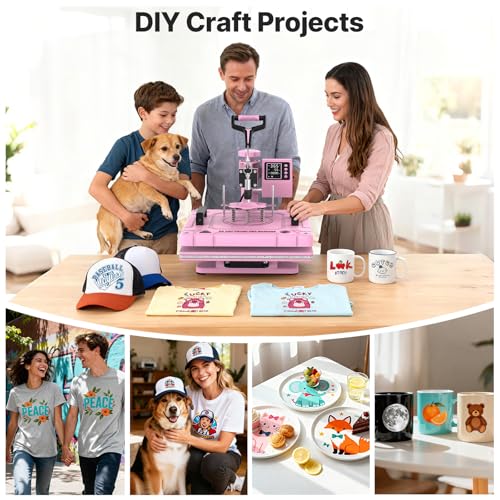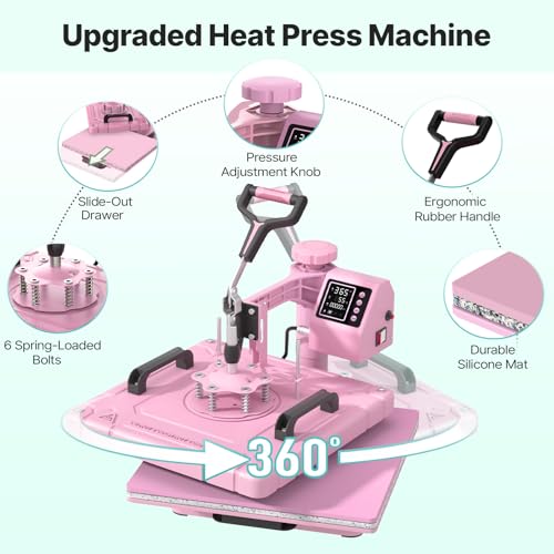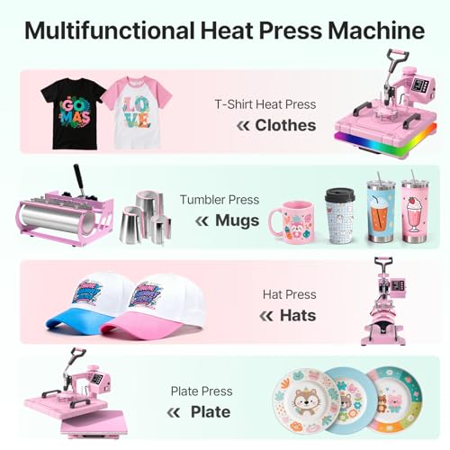 Specification: Slendor 8 in 1 Heat Press Machine 15×15 inch 360-Degree Swing Away Digital T Shirt Pressing Machine Multifunction Heat Transfer Sublimation Combo for T Shirts Mugs Hat Plate Cap,Pink