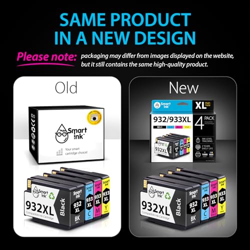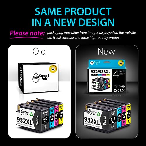 Specification: Smart Ink Compatible Ink Cartridge Replacement for HP 932XL 933XL 932 XL 933 XL 4 Combo Pack (XL Black, Cyan, Magenta Yellow) to use with HP Officejet 6100 6600 6700 7110 7510 7610 7612 7620 Printers