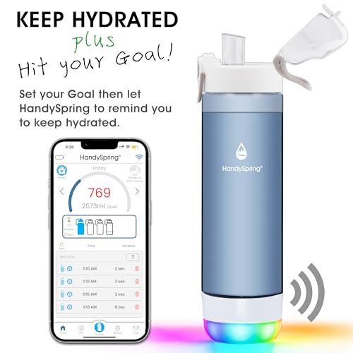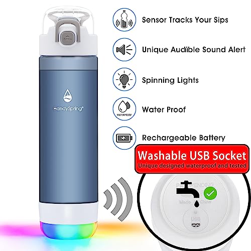Smart Water Bottle with Reminder To Drink Water, Lights And Sound, Water Intake Tracker, Rechargeable, Tritan Plastic, Spout Hydrate Glow Bottle 26 Oz, Smart Hydration Reminder (Gary)