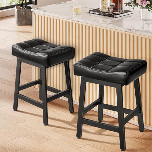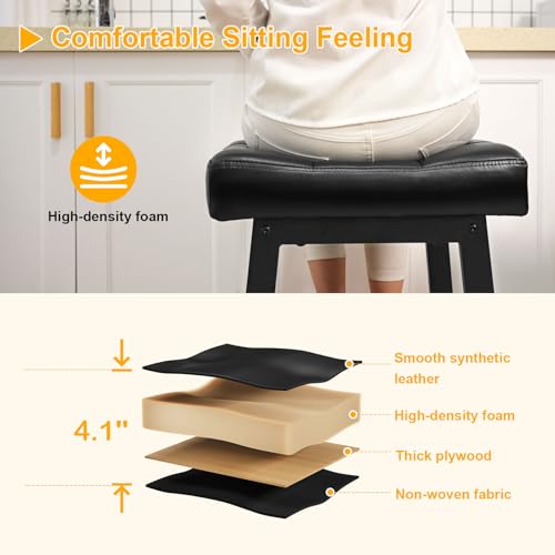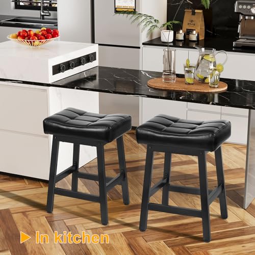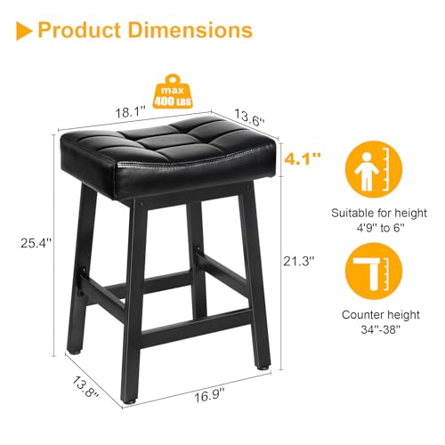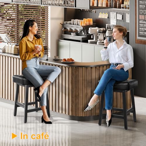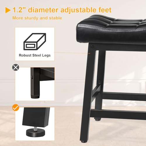 Specification: Snughome Bar Stools Set of 2, 24.4 Inch Counter Height Bar Stools for Kitchen Island, 4.1“ Thick Saddle Seats with Curved Surface, Heavy Duty Metal Base, Easy Assembly, for Cafe, Black