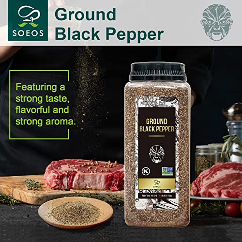 Specification: Soeos Table Ground Black Pepper, 18 oz (510g) Non-GMO, Freshly Peppercorn Powder Bulk, Packed to Keep Peppers Fresh, Ready to Use Peppercorns for Refill, Regular