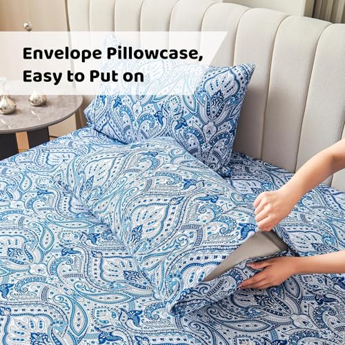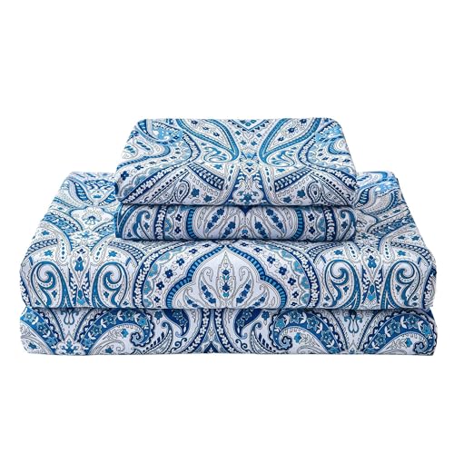 Blue Paisley Queen Size Sheets: Classic paisley printed queen bed sheet is made of premium ultra-soft double brushed microfiber fabric, featuring breathable & soft. Wrap yourself with our bed sheet for a comfortable sleep every night for years to come