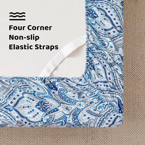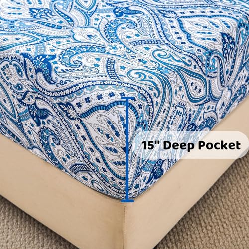 Specification: Softan Blue Paisley Printed Queen Size Sheet Set, Blue Floral Sheets Queen, Cozy Microfiber Fitted Sheet with 15″ Deep Pocket & Non-Slip Straps, Flower Patterned Sheets & Pillowcase Sets