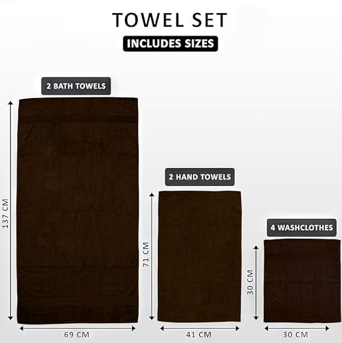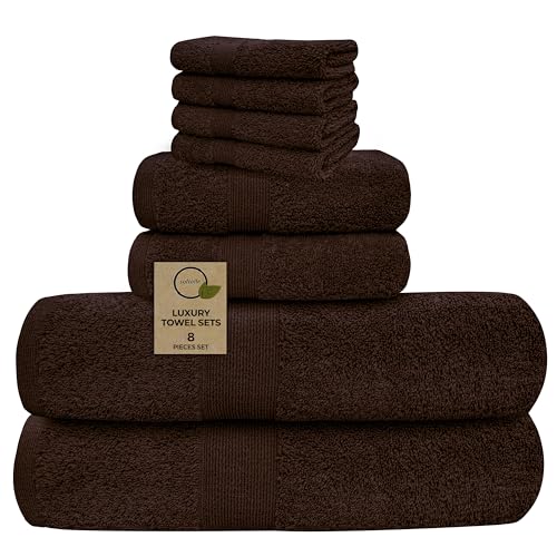 Softolle Luxury 8 Piece Towel Set, 2 Bath Towels 2 Hand Towels 4 Washcloths, Towels for Bathroom, Home, Spa & Gym – Highly Absorbent (Brown)