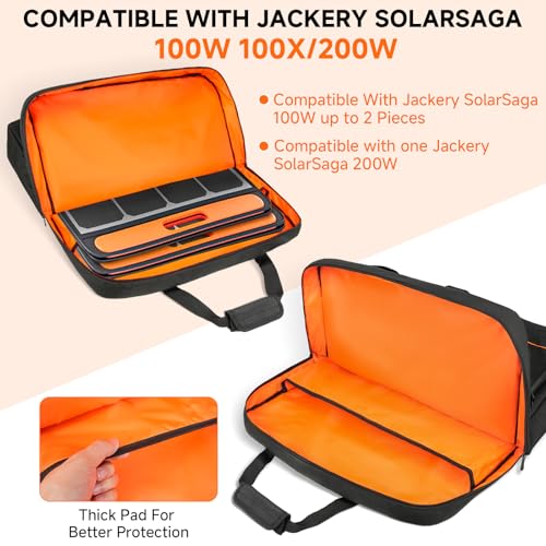 Specification: Solar Panel Storage Bag – Padded Carrying Case Compatible with Jackery SolarSaga 100/100X/200W & Anker Solix PS100/PS200, Travel Bag with Shoulder Strap & Multi-Pockets​, Black