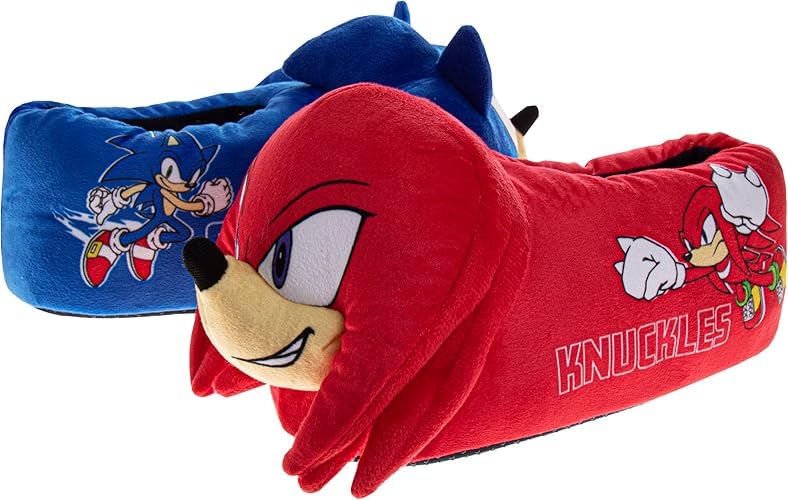 Specification: Sonic the Hedgehog 3D Slippers for Kids Cozy Soft House Shoes Knuckles & Sonic Plush – Red/Blue (Size 9-10 Toddler)