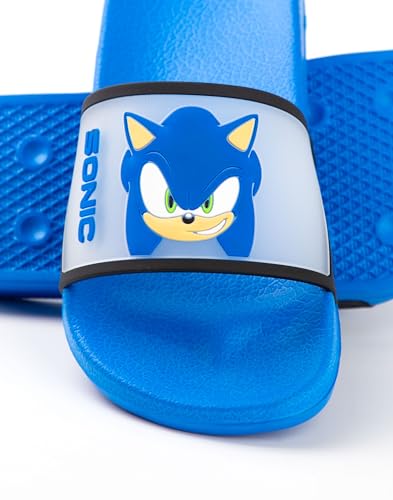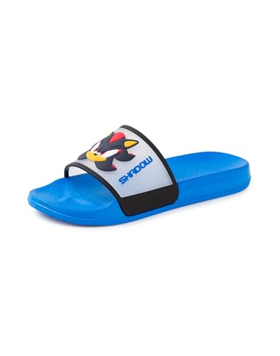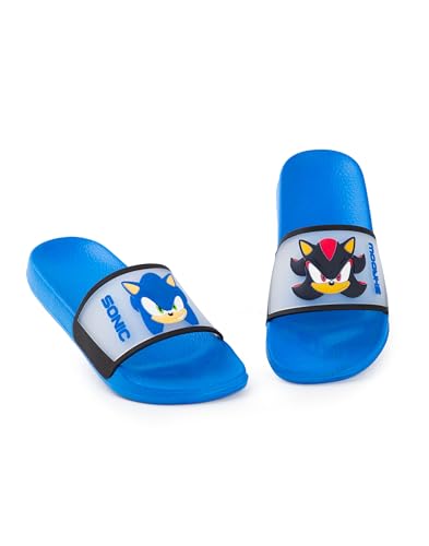 Specification: Sonic The Hedgehog Kids Blue Sliders | Casual Footwear Featuring Sonic & Shadow | Character Faces Cartoon Slip-On Shoes