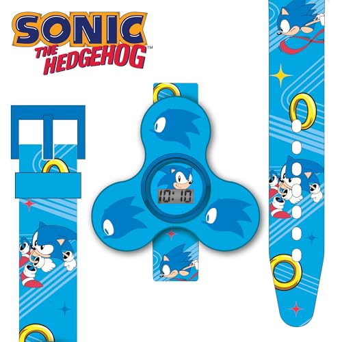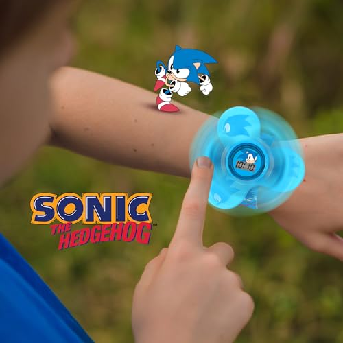 Sonic The Hedgehog Kids Fidget Spinner LCD Watch – Fun Spinning Design, Digital Time Display, Adjustable Strap, Detachable Spinner, Lightweight and Durable, Great for Kids – Fits Wrists 5.5” to 8”