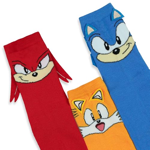 Sonic The Hedgehog Socks Boys’ Sonic Knuckles Tails 3D Ears Kids Crew Socks 3 Pairs Fits Shoe Size 10-4