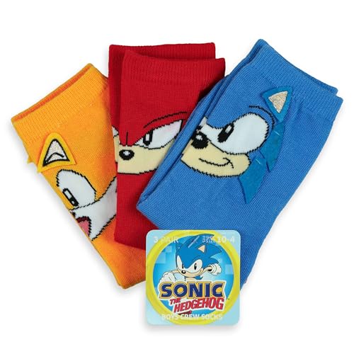 Specification: Sonic The Hedgehog Socks Boys’ Sonic Knuckles Tails 3D Ears Kids Crew Socks 3 Pairs Fits Shoe Size 10-4