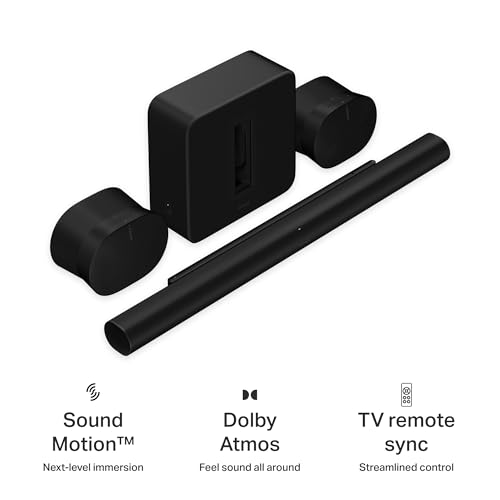 Put yourself inside every scene and song with surreal multichannel surround sound and powerful bass heightened by breathtakingly realistic spatial audio. Includes Sonos Arc Ultra, Sub 4, and two Era 300 speakers.