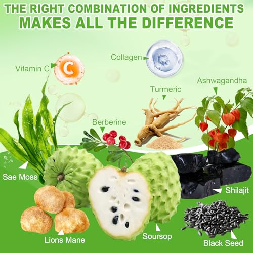 Specification: Soursop Supplement with Ashwagandha Sea Moss Lions Mane Turmeric Shilajit – Graviola Complex Capsules for Antioxidant, Brain & Joint & Skin Support | 120 Vegan Capsules
