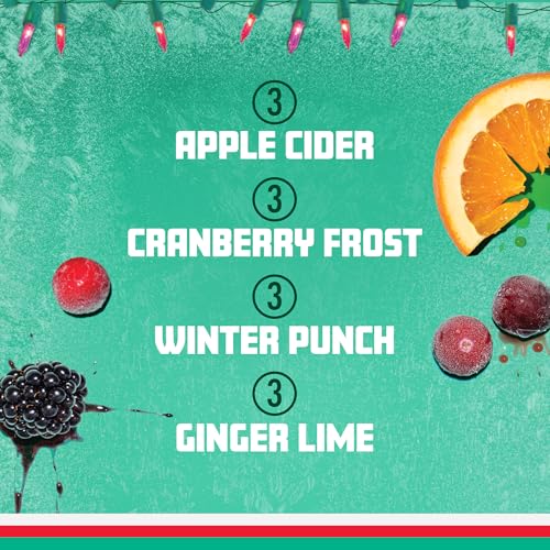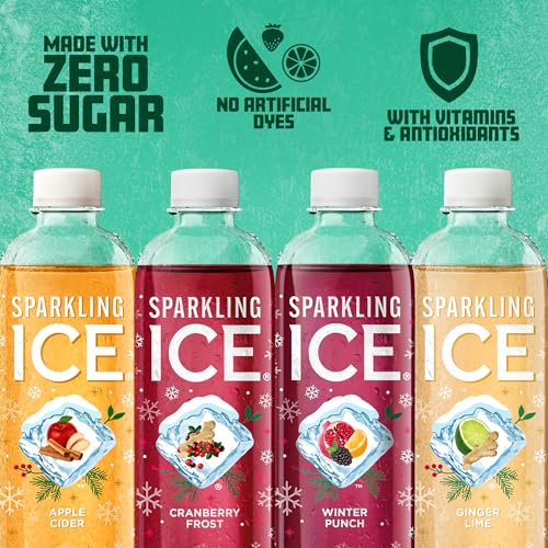 Sparkling Ice, Winter Variety Pack, Flavored Sparkling Water, Zero Sugar, with Vitamins and Antioxidants, 17 fl oz, 12 count (Cranberry Frost, Winter Punch, Apple Cider and Ginger Lime)