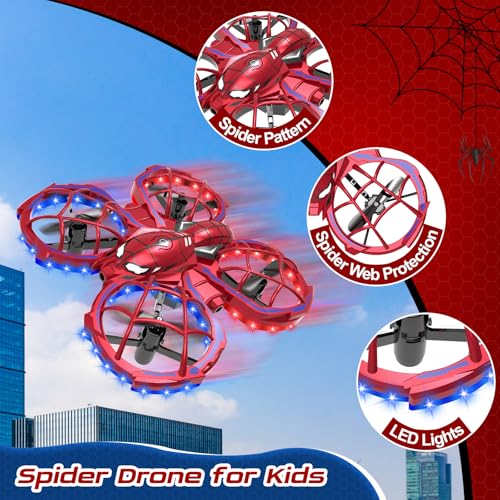 Spider Drone for Beginners: This mini drone is designed with a cool spider pattern, creating a visually striking and unique appearance that captures the imagination and stands out during flight, making it a particularly engaging drone for kids. Note: Hair may get tangled in the blades, causing abnormal drone flight. Removing the hair can restore normal operation.