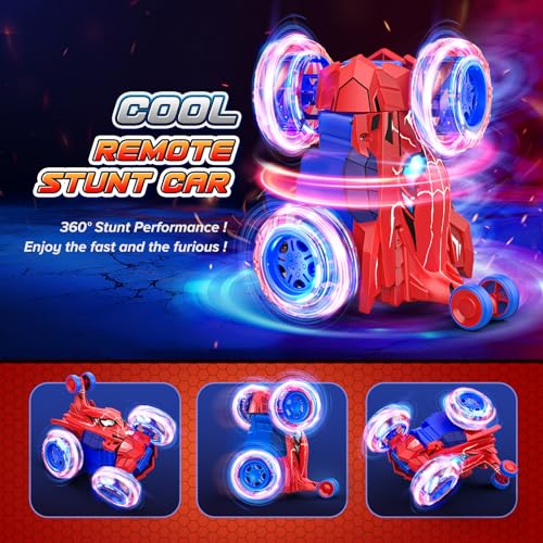 Spider remote control car rc cars toys,Cool rechargeable stunt rc car with 360 flips 4WD wheel with bright light,Fun outdoor toys gifts for kids birthday or Chritmas age 4 5 6 7 8 9 10 11 12 years old