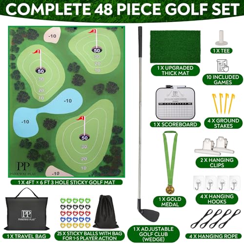 Specification: Sticky Golf Chipping Game Set – 6×6 ft Metal Frame Option with Adjustable Clubs, 25 Sticky Balls, Turf Chipping Mat & Scoreboard – Backyard Golf Target Game for All Ages for Indoor/Outdoor Practice