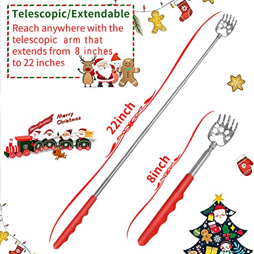 Stocking Stuffers for Men, 2 Pack Extendable Back Scratcher, Christmas Gifts for Men, Santa’s Claws Telescopic Back Scratchers with Christmas Gift Box, Red Massage Tool for Back with Rubber Handles
