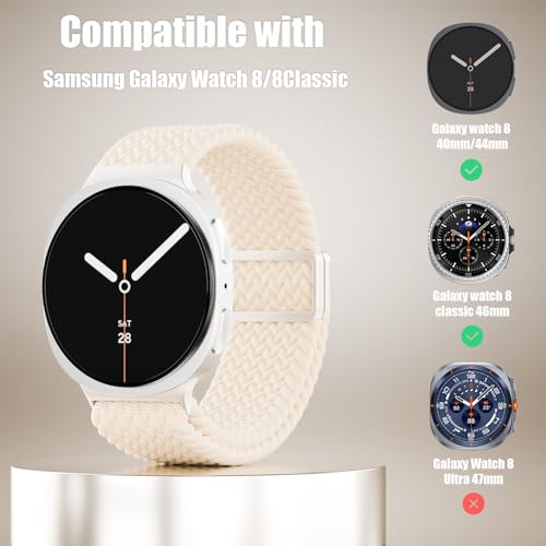 Specification: Stretchy Braid Magnetic Clasp Band Compatible with Samsung Galaxy Watch 8 40mm 44mm /8 Classic 46mm,Soft Nylon Adjustable Wristband Elastic Solo Loop Sport Straps for Women Men