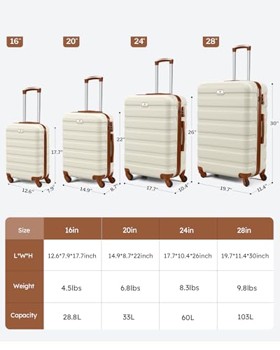 Suitour Luggage 4 Piece Sets,Hardshell Lightweight Suitcase with Spinner Wheels TSA Lock (16″/20″/24″/28″)