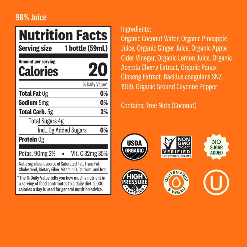 Specification: Suja Organic Digestion Shot with Ginger and Apple Cider Vinegar | Immunity Boost & Digestive Support | Functional Shots | Cold-Pressed Juice with Live Probiotics | Plant-Based & Gluten-Free